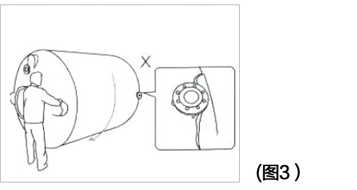 3、搬運、滾動(dòng)本產品時避免傷及接頭(或法蘭)和觸及突出(chū)物。(圖3)