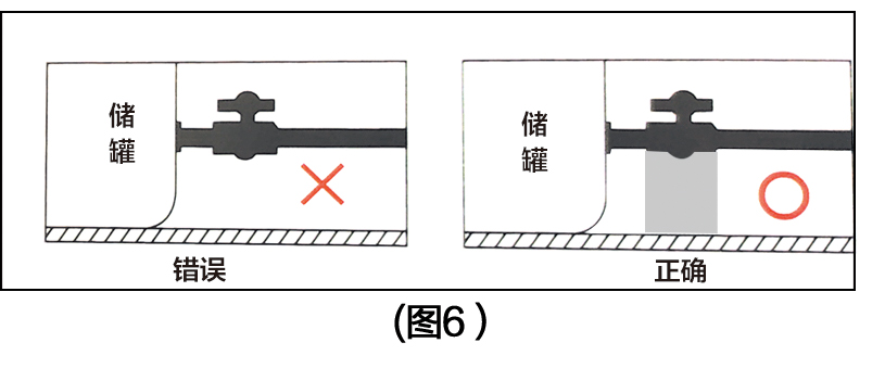 7、出口配管牙部要纏繞生料帶(dài)方可旋緊球閥或膠管,球閥下部需(xū)設置支架台,以防球閥處因負荷過重而致槽壁生裂痕。(圖(tú)6)