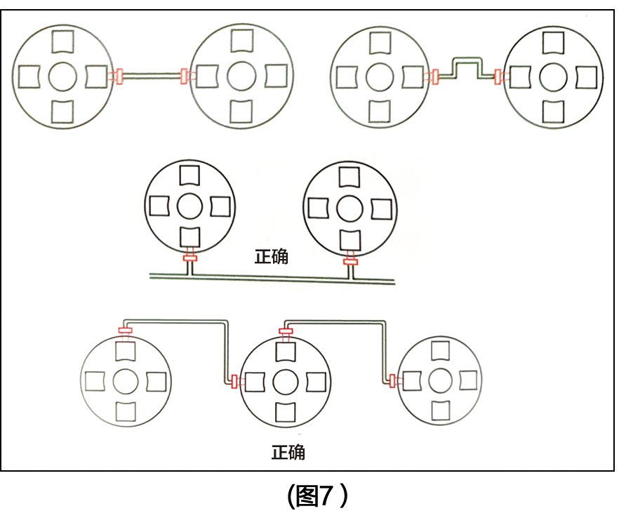 9、儲罐的連接,請勿(wù)於兩桶間直線連接,須以一彎角(jiǎo)迂回對接,以免裝水後產生的壓力,使罐壁垂直度(dù)變化或膨脹,導致接(jiē)頭連接受損產品泄露,甚至(zhì)影響接頭和罐(guàn)體的壽命。(圖(tú)7)